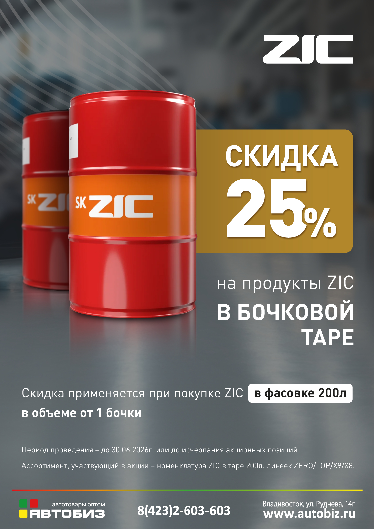 Скидка 25% на продукты ZIC в бочке
