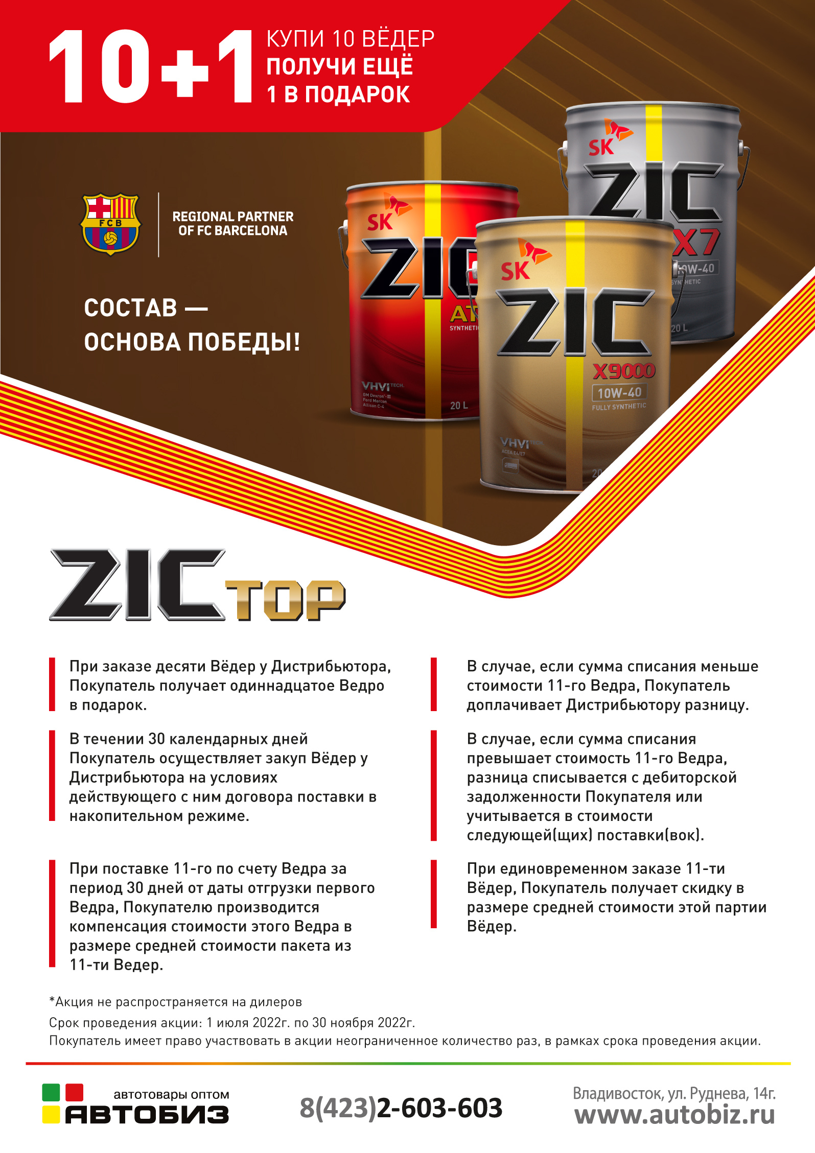 Купи 10 ведер ZIC и получи еще 1 в подарок.