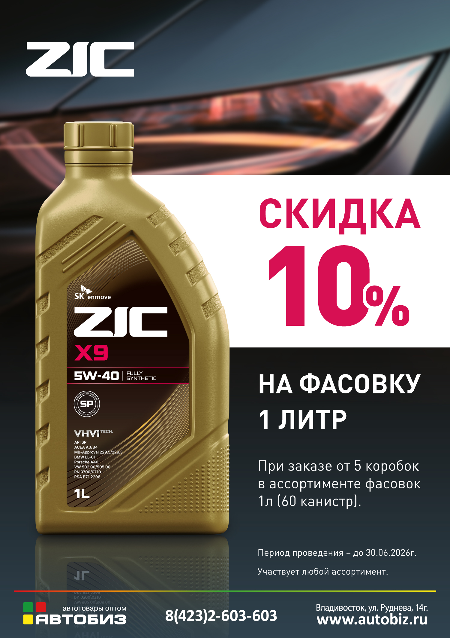 Скидка 10% на масла ZIC объёмом 1л