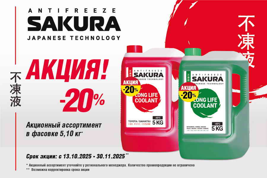 Скидка 20% на антифризы Sakura в канистрах 5 и 10 литров!