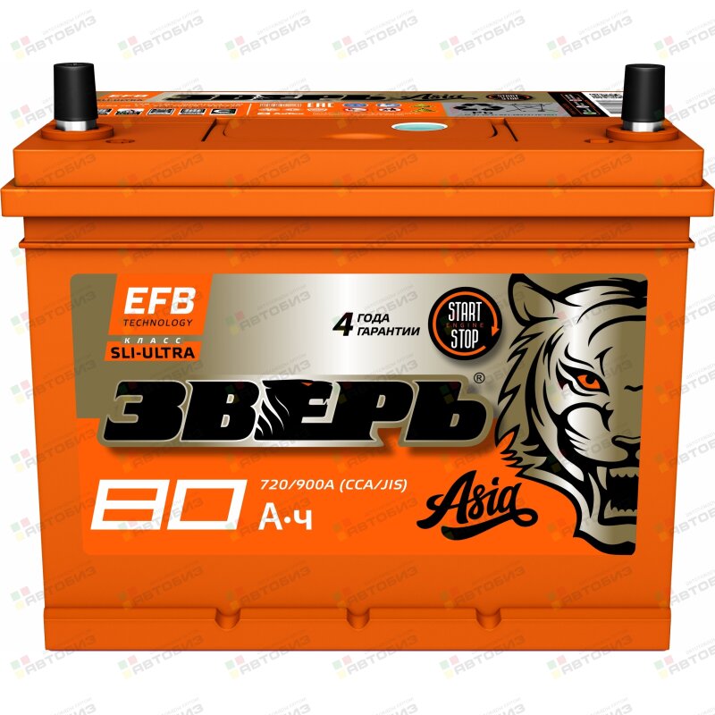 АКБ ЗВЕРЬ ASIA EFB 6СТ- 80VL /70-3-L 80 Ah R ССА 720А 232*175*225, необслуж. (1/88)