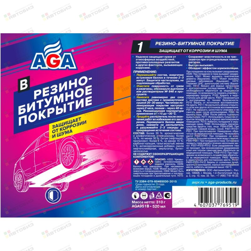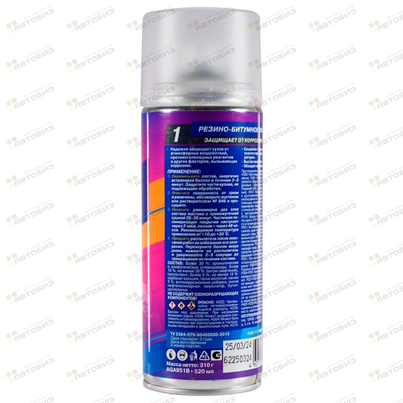 Купить Антикор AGA Резино-битумное покрытие, аэроз. 520мл (1/12), AGA951B и другие автотовары в оптовом интернет-магазине Автобиз с доставкой. Мы работаем по всему Дальнему востоку и Сибири. На нашем сайте вы можете подобрать запчасти под нужный автомобиль и сразу заказать их. Всегда в наличии большой ассортимент автозапчастей, автоаксессуаров, автохимии и масел.
