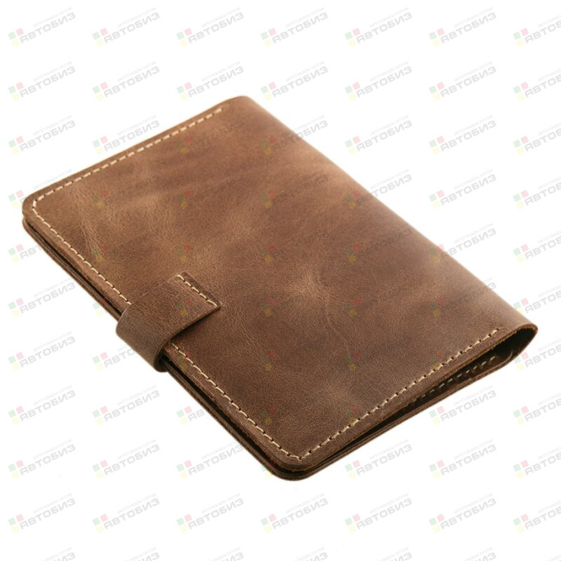 Бумажник-обложка (для паспорта, автодокументов) на кнопке, 3 кожаных кармана, 2 кожаных кармана для карточек, пластиковый файл для автодокументов (есть карман для страховки).