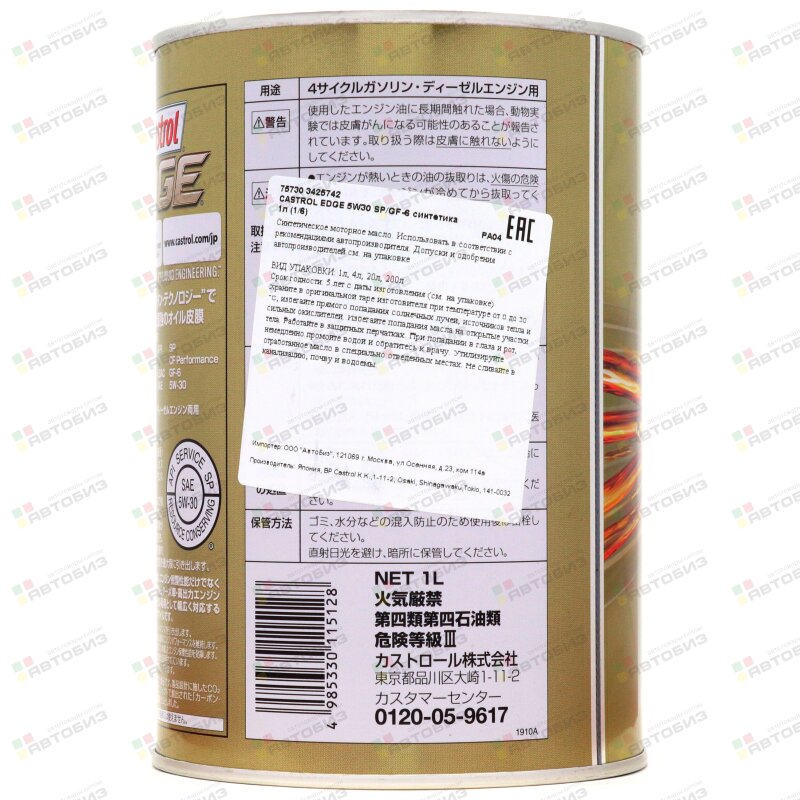 Купить CASTROL EDGE 5W30 SP/GF-6 синтетика 1л (1/6), 3425742 и другие автотовары в оптовом интернет-магазине Автобиз с доставкой. Мы работаем по всему Дальнему востоку и Сибири. На нашем сайте вы можете подобрать запчасти под нужный автомобиль и сразу заказать их. Всегда в наличии большой ассортимент автозапчастей, автоаксессуаров, автохимии и масел.