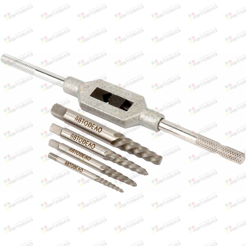 Набор экстракторов с воротком АВТОДЕЛО применяется для извлечения сломанного крепежа с наружным диаметром от 3 до 14мм. Экстракторы изготовлены методом фрезерования из быстрорежущей стали, аналогичной Р6М5. В комплекте набора 4 экстрактора различной длины с левой резьбой и вороток.