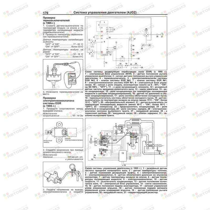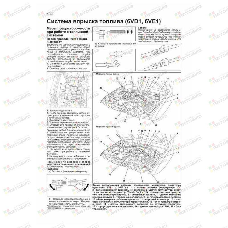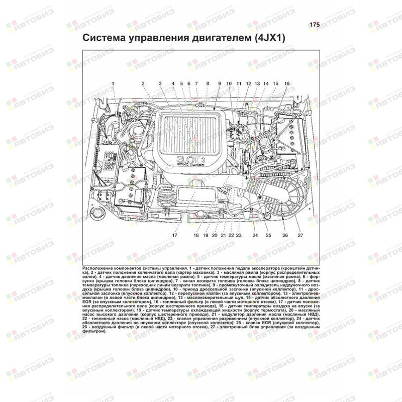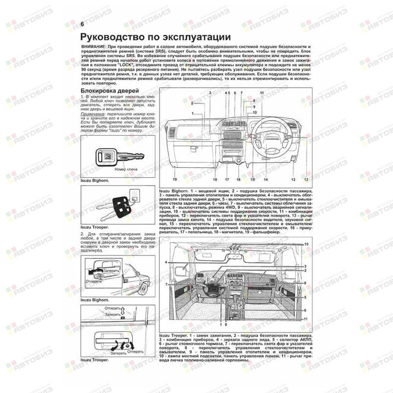 Руководство по ремонту Isuzu Trooper / Bighorn, Opel Monterey 1991—2002 гг. выпуска с левым и правым рулем, оборудованных бензиновыми двигателями 6VD1 (3,2 л) и 6VE1 (3,5 л) и дизельными двигателями 4JG2 (3,1 л) и 4JX1 (3,0 л). Издание содержит руководство по эксплуатации, подробные сведения по техническому обслуживанию автомобиля и диагностике, ремонту и регулировке систем двигателя (в т. ч. систем управления бензиновыми и дизельными двигателями, ТНВД, зажигания, запуска и зарядки), механических и автоматических коробок переключения передач (МКПП и АКПП), тормозной системы (включая антиблокировочную систему тормозов ABS), рулевого управления, подвески, системы подключения полного привода (TOD), кузовных элементов, систем вентиляции и кондиционирования (AC), системы пассивной безопасности (SRS). Приведены инструкции по диагностике 6 электронных систем: управления двигателями, АКПП, TOD, ABS, АС и SRS. Описано 360 кодов неисправностей: P0, P1, Flash и возможные причины их возникновения. Приведены разъемы и процедуры проверки сигналов на выводах блоков управления различными системами — PinData. Представлено 70 подробных электросхем (53 систем) для различных вариантов комплектации автомобилей, описание проверок большинства элементов электрооборудования. Приведены возможные неисправности и методы их устранения, сопрягаемые размеры основных деталей и пределы их допустимого износа, рекомендуемые смазочные материалы, рабочие жидкости, необходимые для технического обслуживания, размеры рекомендуемых шин и дисков. Книга будет полезна как автовладельцам, начинающим и опытным, так и профессионалам авторемонта и диагностики. Автовладелец найдет для себя полезными: инструкцию по эксплуатации, техническое обслуживание (с периодичностью и необходимыми материалами), инструкции по самостоятельному ремонту. Профессионалам будут полезны: операции по сложному ремонту, допустимые размеры деталей, данные по диагностике и подробные схемы электрооборудования. Книги серии «Профессионал» могут выручить Вас в дороге, если Вам придется пользоваться услугами автосервиса, незнакомого или малознакомого с особенностями модели Вашего автомобиля. Отдавая автомобиль на СТО, оставьте нашу книгу в автомобиле, и в случае каких-либо затруднений автомеханик сможет воспользоваться ею, что значительно ускорит ремонт Вашего автомобиля. Качественное изложение материала позволяет сократить время обслуживания автомобиля и сделать его более эффективным. Книга предназначена для автовладельцев, персонала СТО и ремонтных мастерских.