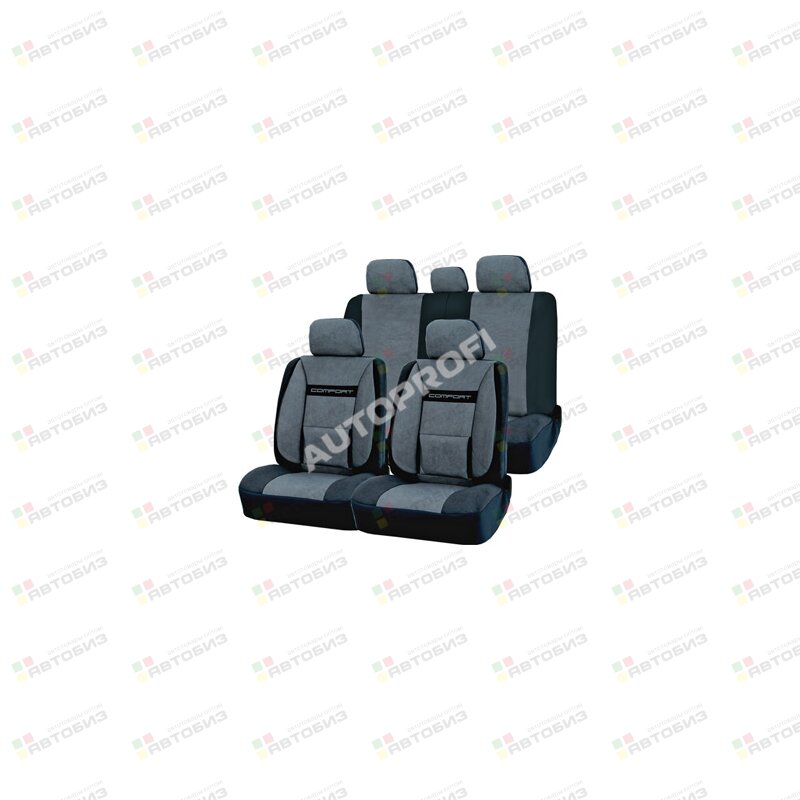 Автомобильные чехлы Comfort от компании Autoprofi, с боковой и ортопедической поддержкой спины. Цвет чёрный/серый.