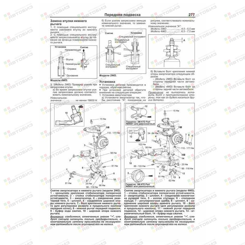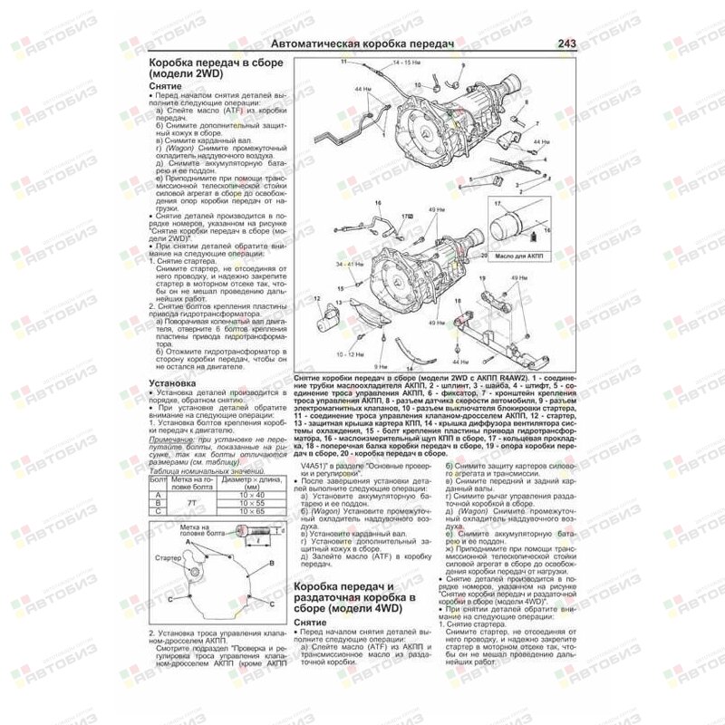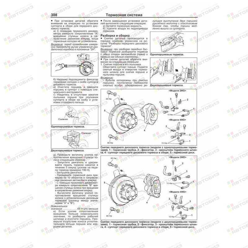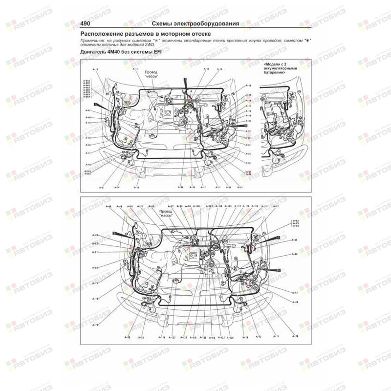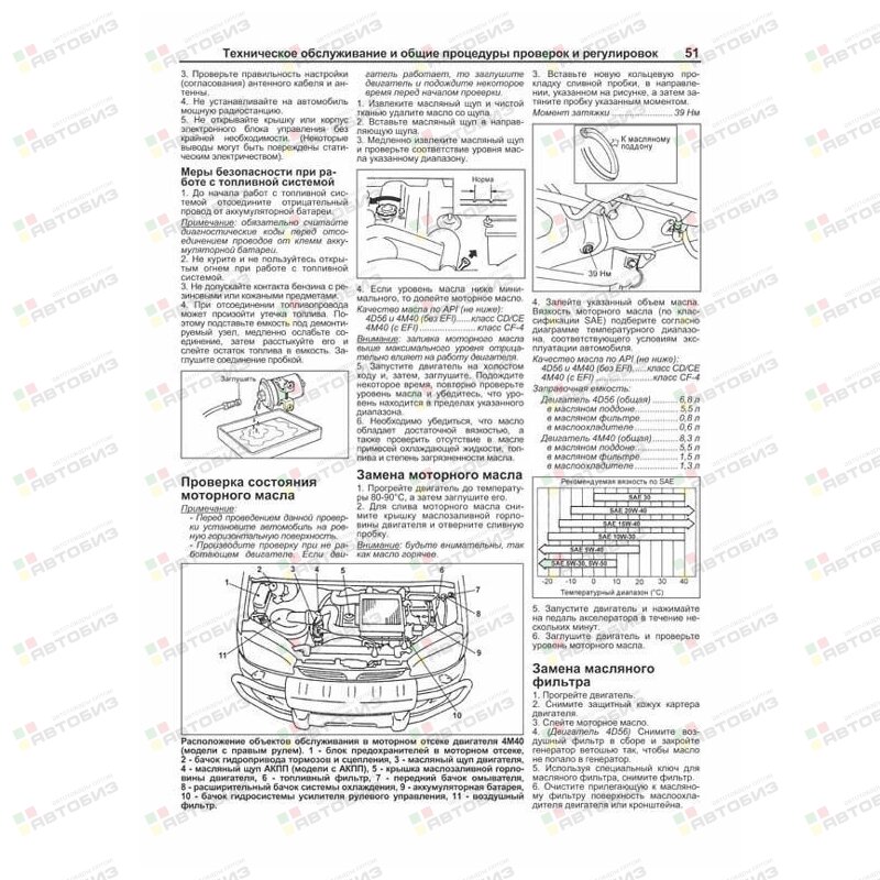 Руководство по ремонту MITSUBISHI Delica / Space Gear / Cargo / L400 1994–2007 годов выпуска с правосторонним и левосторонним рулевым управлением, оборудованных дизельными двигателями 4M40 (2,8 л) и 4D56 (2,5 л). Издание содержит руководство по эксплуатации, подробные сведения по техническому обслуживанию автомобиля и диагностике, ремонту и регулировке систем двигателя (в т. ч. ТНВД, электронного управления (EFI-diesel), запуска, зарядки и турбонаддува), механических и автоматических коробок передач (МКПП и АКПП), переднего и заднего мостов (включая систему полного привода 4WD), подвески (в т. ч. системы управления режимами работы амортизаторов (ECS)), рулевого управления, элементов тормозной системы (включая антиблокировочную систему тормозов (ABS)), кузовных элементов, систем вентиляции и кондиционирования (AC), системы пассивной безопасности (SRS). Приведены инструкции по диагностике 6 электронных систем: управления двигателем, АКПП, ECS, ABS, АС и SRS. Описано 123 кода неисправностей Flash и возможные причины их возникновения. Приведены разъемы и процедуры проверки сигналов на выводах блоков управления различными системами — PinData. Представлены 135 подробных электросхем (40 систем) для различных вариантов комплектации автомобилей, описание проверок большинства элементов электрооборудования. Приведены возможные неисправности и методы их устранения, сопрягаемые размеры основных деталей и пределы их допустимого износа, рекомендуемые смазочные материалы, рабочие жидкости, необходимые для технического обслуживания, размеры рекомендуемых и допускаемых к установке шин и дисков. Книга будет полезна как автовладельцам, начинающим и опытным, так и профессионалам авторемонта и диагностики. Автовладелец найдет для себя полезными: инструкцию по эксплуатации, техническое обслуживание (с периодичностью и необходимыми материалами), инструкции по самостоятельному ремонту. Профессионалам будут полезны: операции по сложному ремонту, допустимые размеры деталей, данные по диагностике и подробные схемы электрооборудования. Книги серии «Профессионал» могут выручить Вас в дороге, если Вам придется пользоваться услугами автосервиса, незнакомого или малознакомого с особенностями модели Вашего автомобиля. Отдавая автомобиль на СТО, оставьте нашу книгу в автомобиле, и в случае каких-либо затруднений автомеханик сможет воспользоваться ею, что значительно ускорит ремонт Вашего автомобиля. Качественное изложение материала позволяет сократить время обслуживания автомобиля и сделать его более эффективным. Книга предназначена для автовладельцев, персонала СТО и ремонтных мастерских.