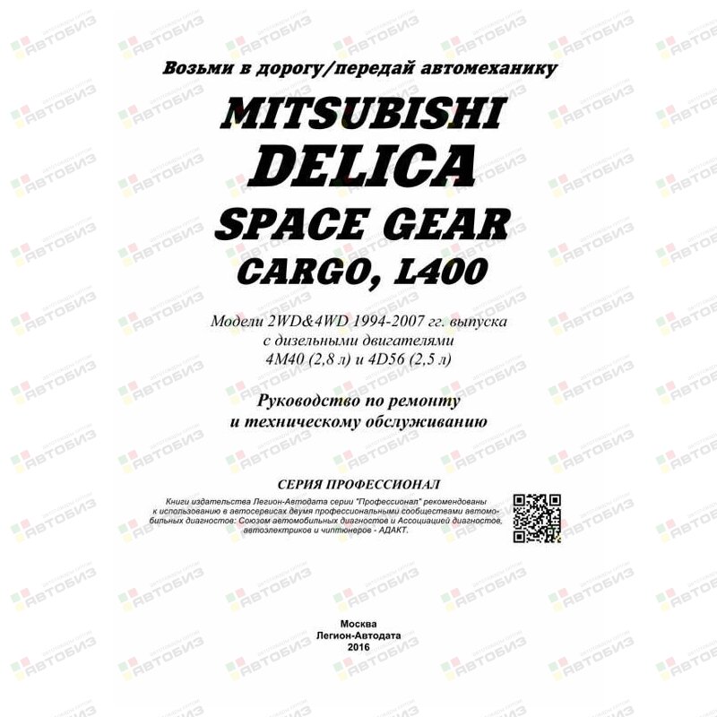 MITSUBISHI DELICA / SPACE GEAR / CARGO / L400. Модели 2WD&4WD 1994—2007 гг. выпуска с дизельными двигателями 4M40 (2,8 л) и 4D56 (2,5 л). Серия «Профессионал». Руководство по ремонту и техническому обслуживанию