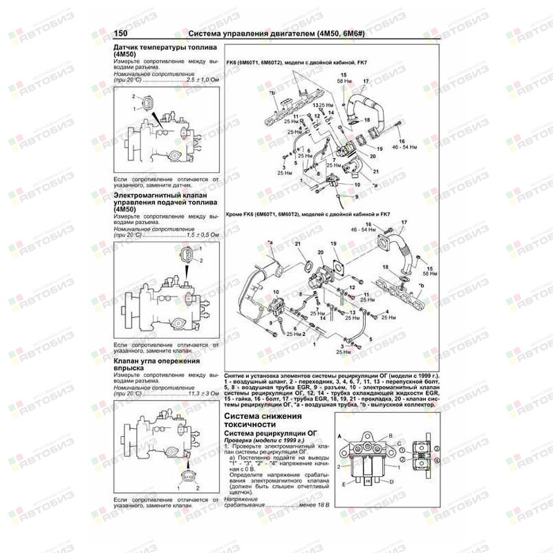Руководство по ремонту Mitsubishi Fuso Fighter с 1999 года выпуска, оборудованных дизельными двигателями 4M50 (4,9 л), 6M60 (7,5 л), 6M61 (8,2 л) с различными типами топливной аппаратуры. Издание содержит руководство по эксплуатации, описания работы систем и агрегатов, подробные сведения по техническому обслуживанию автомобиля и диагностике, ремонту и регулировке систем двигателя (в т. ч. топливной системы: Common Rail (Denso и Bosch), с распределительным ТНВД (Denso V4, Zexel VRZ), с рядным ТНВД с электронной системой управления (Zexel TICS); смазки, охлаждения, турбонаддува, рециркуляции отработавших газов (EGR), запуска и зарядки), механических коробок переключения передач (МКПП) различных типов (M060S6, M070S6, M8S2×5, M035S5, M035S6), тормозных систем (пневмогидравлической и пневматической, антиблокировочной системы тормозов (ABS), трансмиссионного и колесно-го стояночного тормоза), рулевого управления, подвески (в т. ч. пневматической), кабины и рамы, системы кондиционирования (АС), отопления и вентиляции. Приведены инструкции по диагностике системы управления двигателем и антиблокировочной системы тормозов (ABS). Подробно описаны 188 кодов неисправностей Flash; условия их возникновения и возможные причины. Приведены разъемы и процедуры проверки сигналов на выводах блоков управления различными система-ми — PinData. Представлено 65 подробных электросхем (20 систем) для различных вариантов комплектации, описание большинства элементов электрооборудования. Приведены возможные неисправности и методы их устранения, сопрягаемые размеры основных деталей и пределы их допустимого износа, рекомендуемые смазочные материалы, рабочие жидкости, необходимые для технического обслуживания автомобиля. Книга будет полезна как автовладельцам, начинающим и опытным, так и профессионалам авторемонта и диагностики. Автовладелец найдет для себя полезными: инструкцию по эксплуатации, техническое обслуживание (с периодичностью и необходимыми материалами), инструкции по самостоятельному ремонту. Профессионалам будут полезны: операции по сложному ремонту, допустимые размеры деталей, данные по диагностике и подробные схемы электрооборудования. Книги серии «Профессионал» могут выручить Вас в дороге, если Вам придется пользоваться услугами автосервиса, незнакомого или малознакомого с особенностями модели Вашего автомобиля. Отдавая автомобиль на СТО, оставьте нашу книгу в автомобиле, и, в случае каких-либо затруднений, автомеханик сможет воспользоваться ею, что значительно ускорит ремонт Вашего автомобиля. Качественное изложение материала позволяет сократить время обслуживания автомобиля и сделать его более эффективным. Книга предназначена для автовладельцев, персонала СТО и ремонтных мастерских.