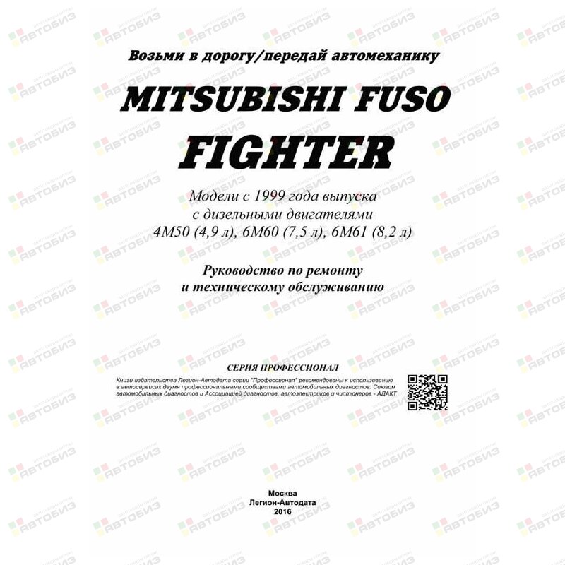 Mitsubishi Fuso Fighter. Модели с 1999 года выпуска с дизельными двигателями 4M50 (4,9 л), 6M60 (7,5 л), 6M61 (8,2 л). Серия «Профессионал». Руководство по ремонту и техническому обслуживанию
