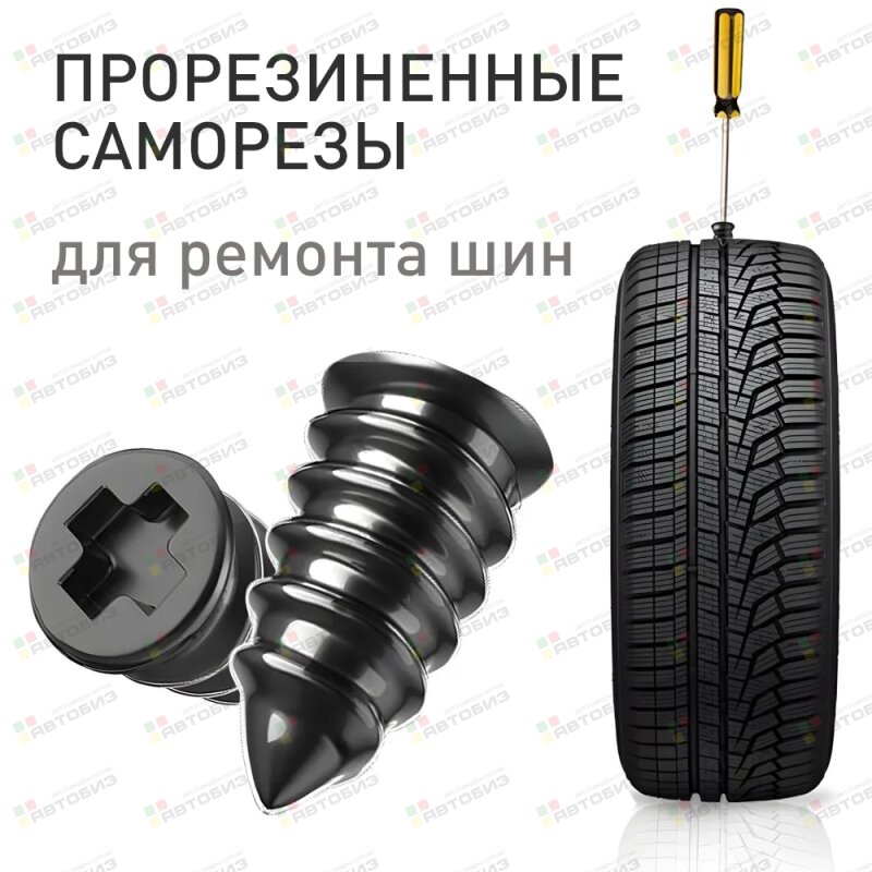 Прорезиненные саморезы — это простое и эффективное средство ремонта мелких проколов шин в дорожных условиях. Для работы нужна только отвертка. Благодаря слою мягкой резины саморез эффективно закрывает отверстие прокола, позволяя без проблем доехать до шиномонтажа.