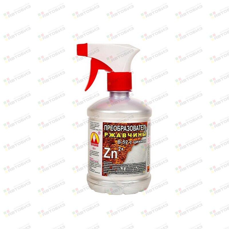 Купить Преобразователь ржавчины "Вершина" с цинком, триггер 0,5л (1/20), 70782 и другие автотовары в оптовом интернет-магазине Автобиз с доставкой. Мы работаем по всему Дальнему востоку и Сибири. На нашем сайте вы можете подобрать запчасти под нужный автомобиль и сразу заказать их. Всегда в наличии большой ассортимент автозапчастей, автоаксессуаров, автохимии и масел.