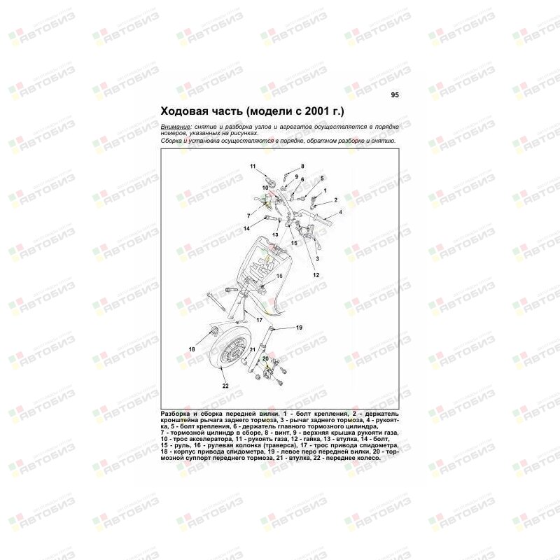 В руководстве дается подробное пошаговое описание процедур по ремонту и техническому обслуживанию скутеров Honda Lead 1988—2001 гг. с двухтактными карбюраторными двигателем объемом 50 и 90 см 3 и выпуска и моделей с 2001 года выпуска с двухтактными карбюраторными двигателем объемом 50 и 100 см 3 Издание содержит подробные сведения по ремонту и регулировке механизмов двигателя, трансмиссии, электрооборудования, систем зажигания (CDI), зарядки, а также возможные неисправности и методы их устранения, сопрягаемые размеры основных деталей и пределы их допустимого износа. Объем данной информации позволяет использовать руководство при ремонте других моделей скутеров Honda. Рассмотрена информация по моделям с 2001 года выпуска Книга предназначена для владельцев и специалистов по ремонту.