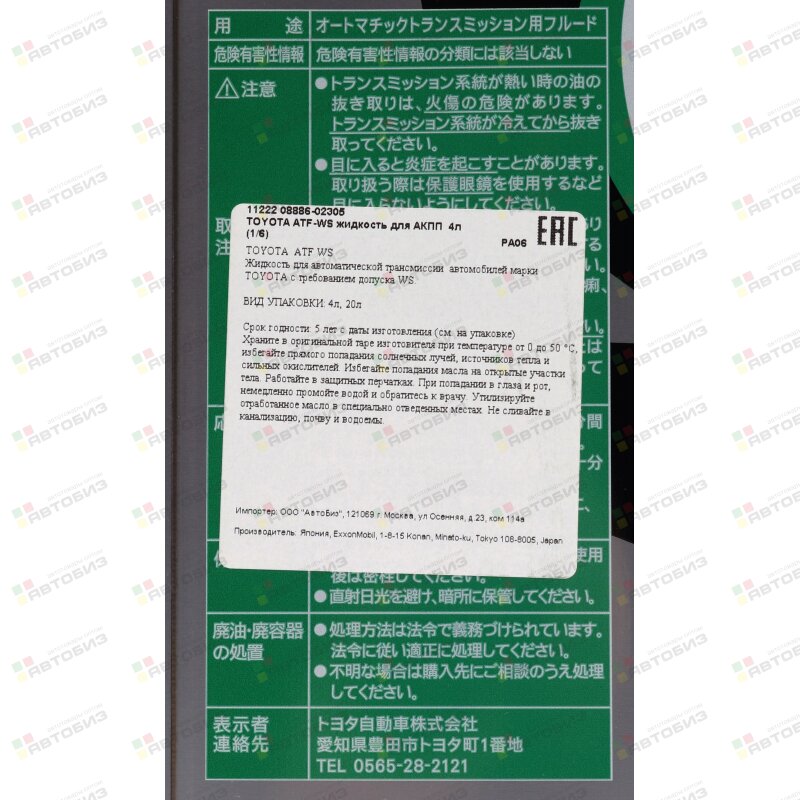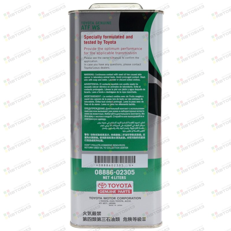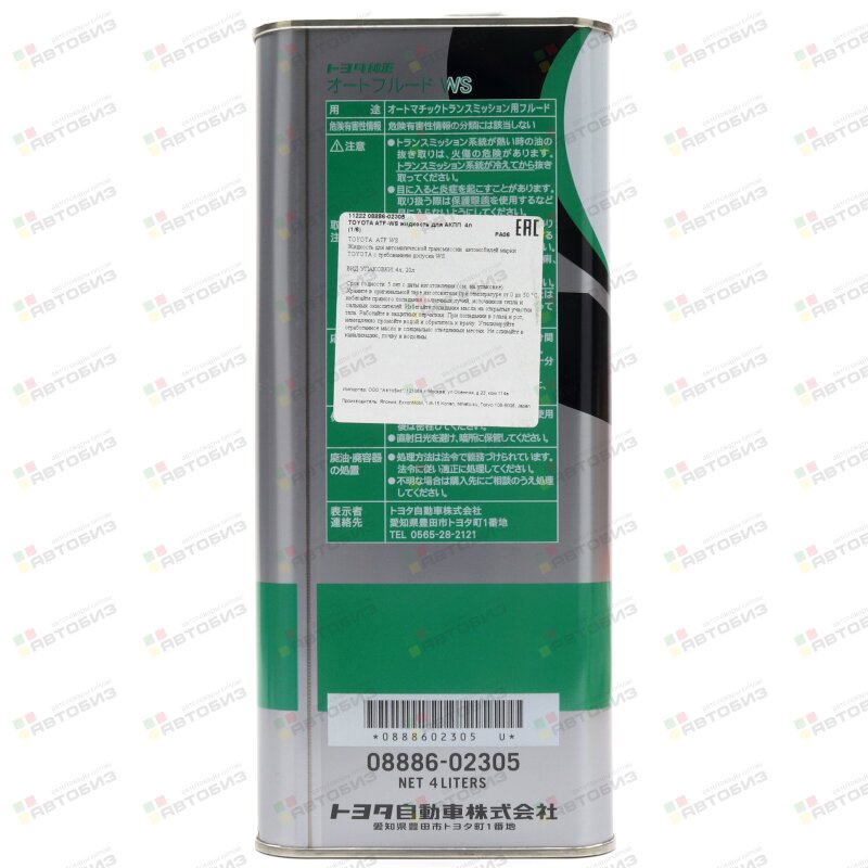 Купить TOYOTA АTF-WS жидкость для АКПП 4л (1/6), 08886-02805 и другие автотовары в оптовом интернет-магазине Автобиз с доставкой. Мы работаем по всему Дальнему востоку и Сибири. На нашем сайте вы можете подобрать запчасти под нужный автомобиль и сразу заказать их. Всегда в наличии большой ассортимент автозапчастей, автоаксессуаров, автохимии и масел.