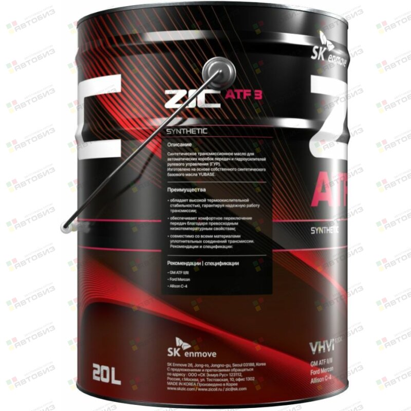 Купить ZIC ATF 3 20л (GM Dexron III, Allison C-4, Ford Mercon), 192632 и другие автотовары в оптовом интернет-магазине Автобиз с доставкой. Мы работаем по всему Дальнему востоку и Сибири. На нашем сайте вы можете подобрать запчасти под нужный автомобиль и сразу заказать их. Всегда в наличии большой ассортимент автозапчастей, автоаксессуаров, автохимии и масел.