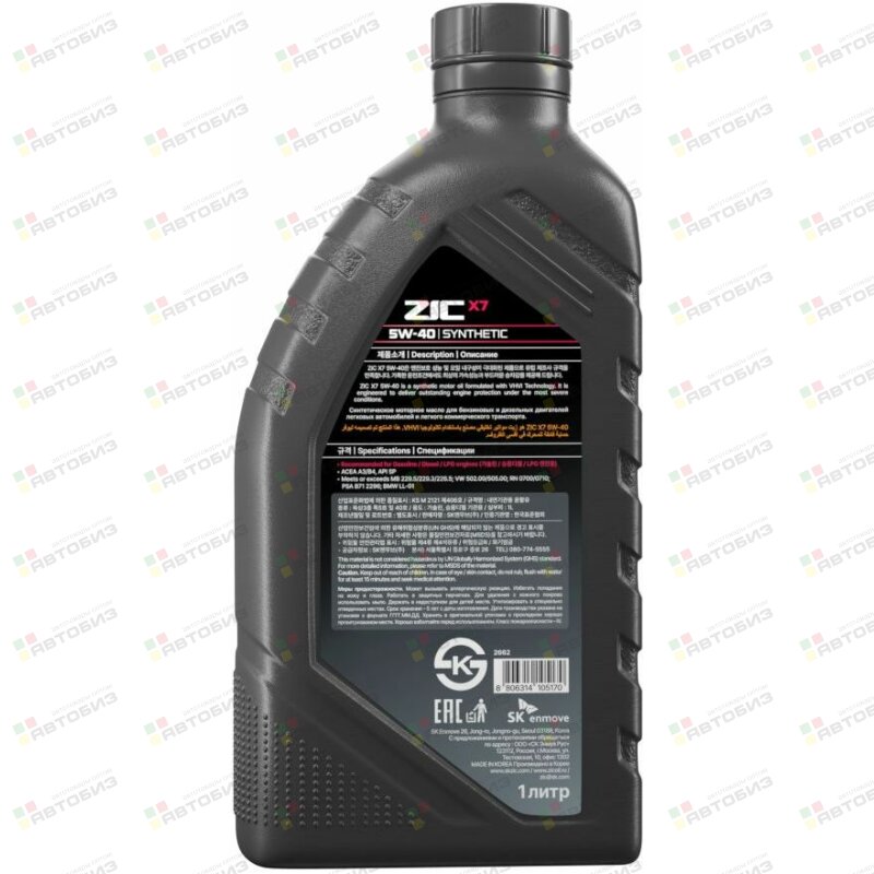 Аналоги для масло моторное ZIC X7 5w40 SP/CF, ACEA A3/B4 1л (бензин, синтетика) (1/12)