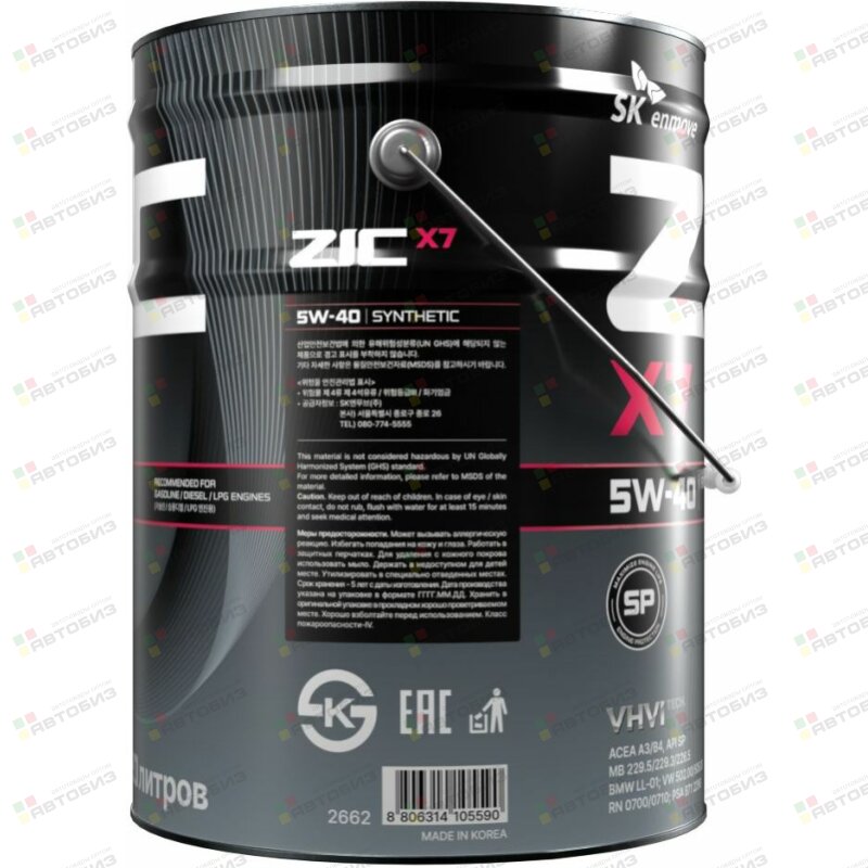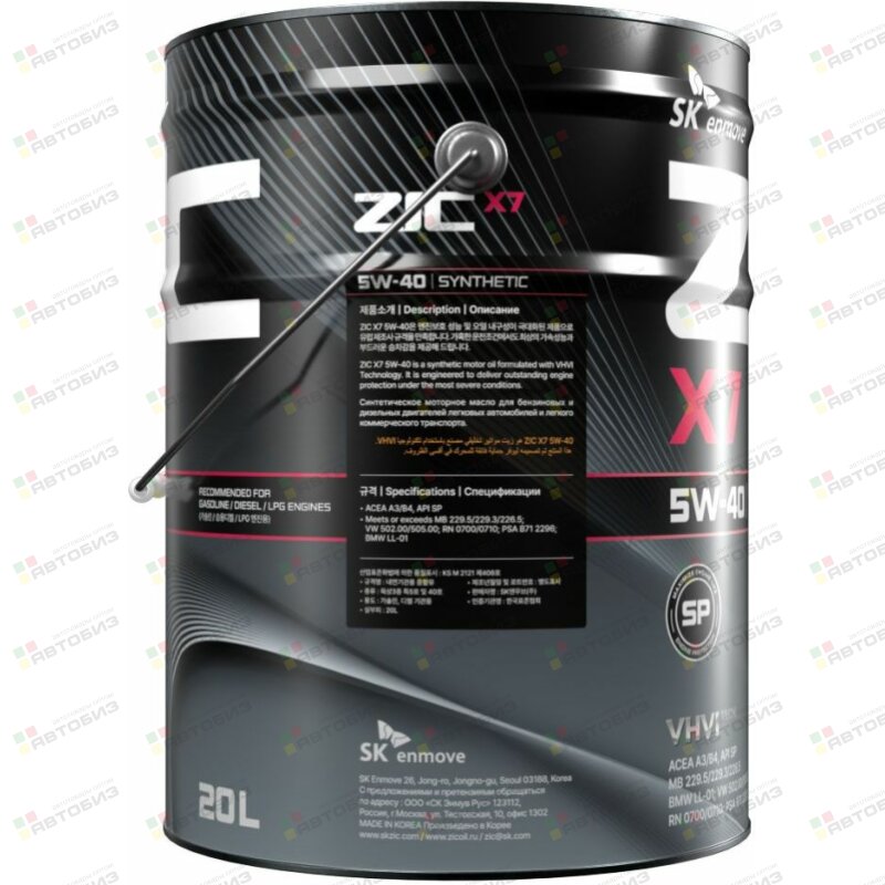 Купить ZIC X7 5w40 SP/CF, ACEA A3/B4 20л (бензин, синтетика), 192662 и другие автотовары в оптовом интернет-магазине Автобиз с доставкой. Мы работаем по всему Дальнему востоку и Сибири. На нашем сайте вы можете подобрать запчасти под нужный автомобиль и сразу заказать их. Всегда в наличии большой ассортимент автозапчастей, автоаксессуаров, автохимии и масел.
